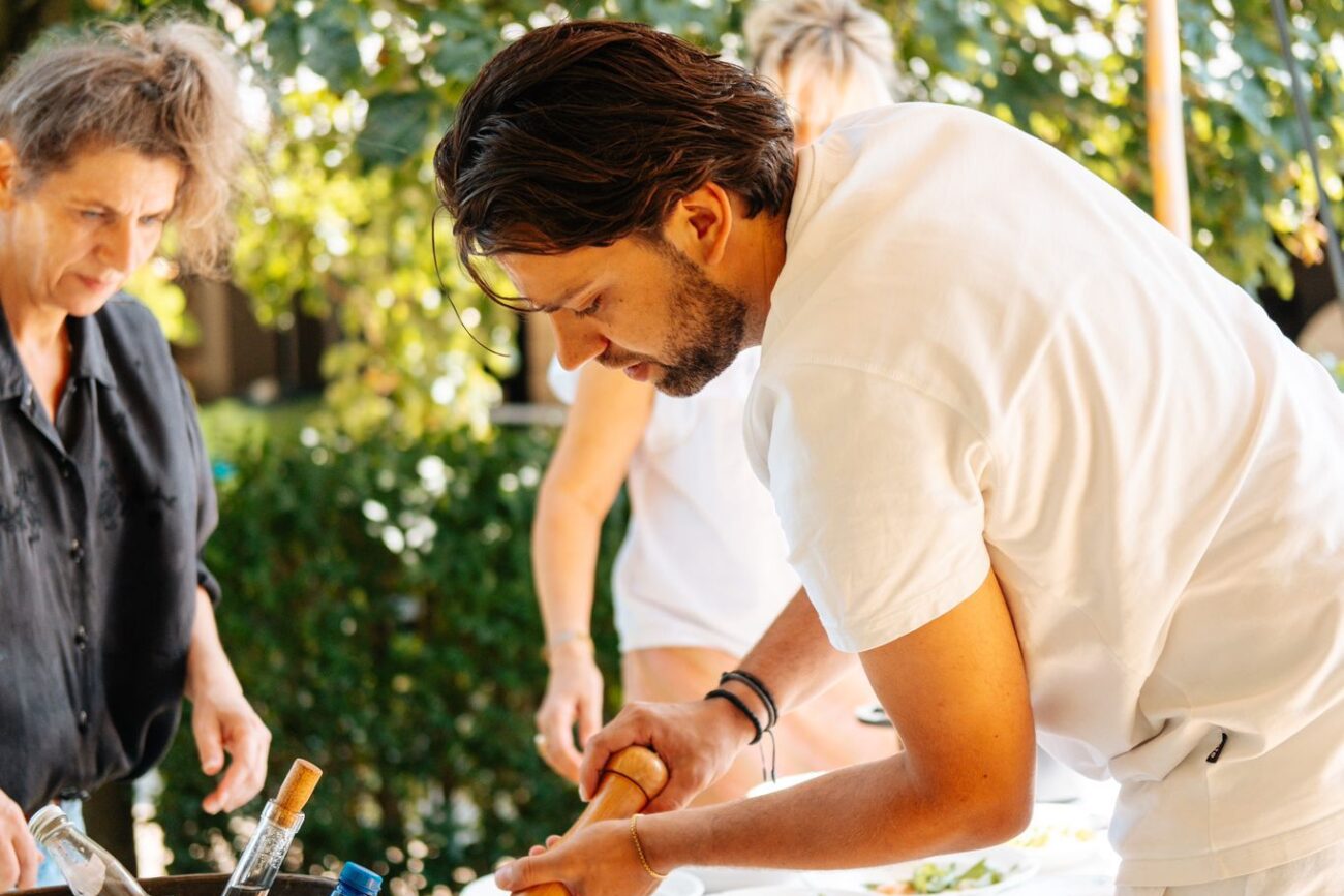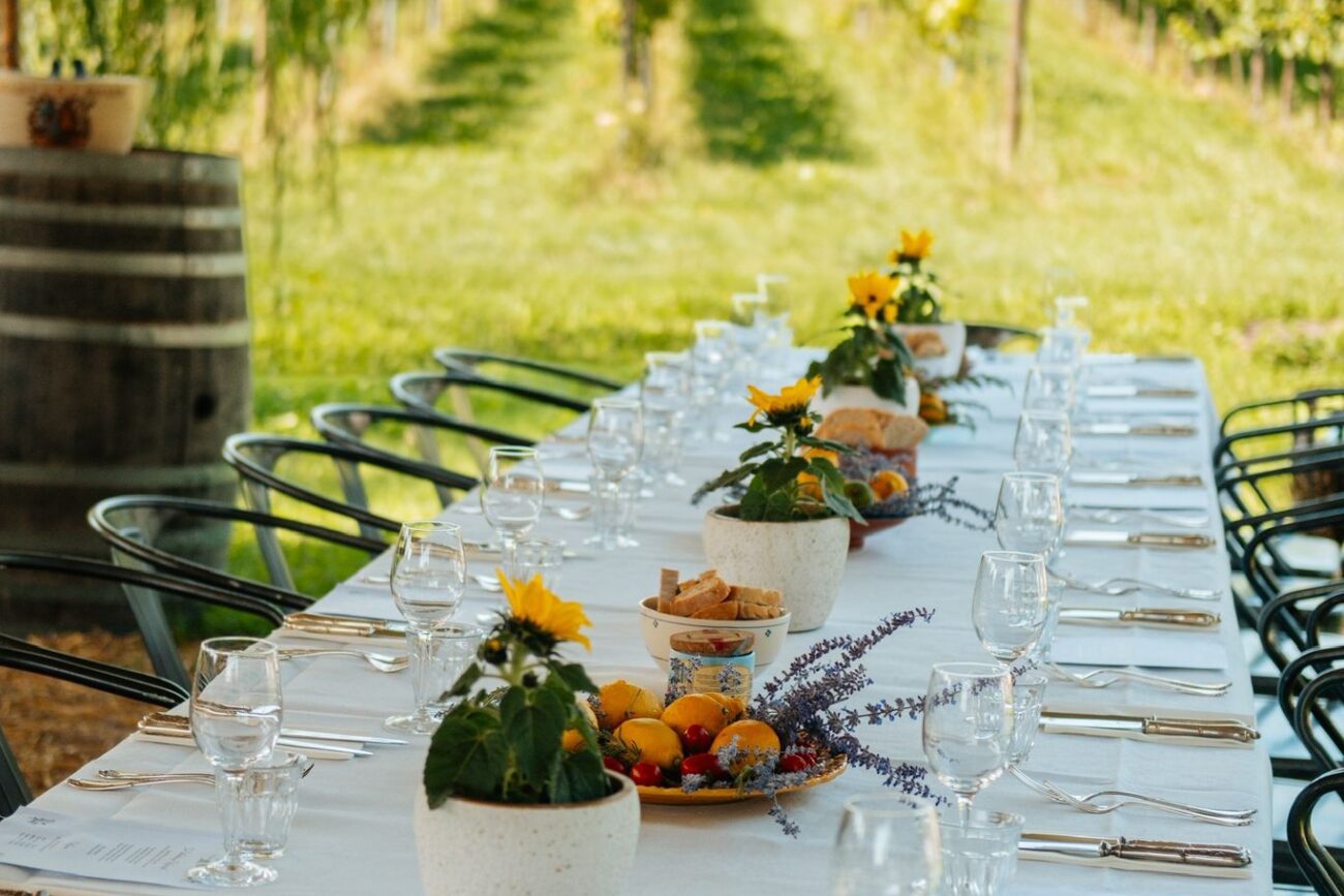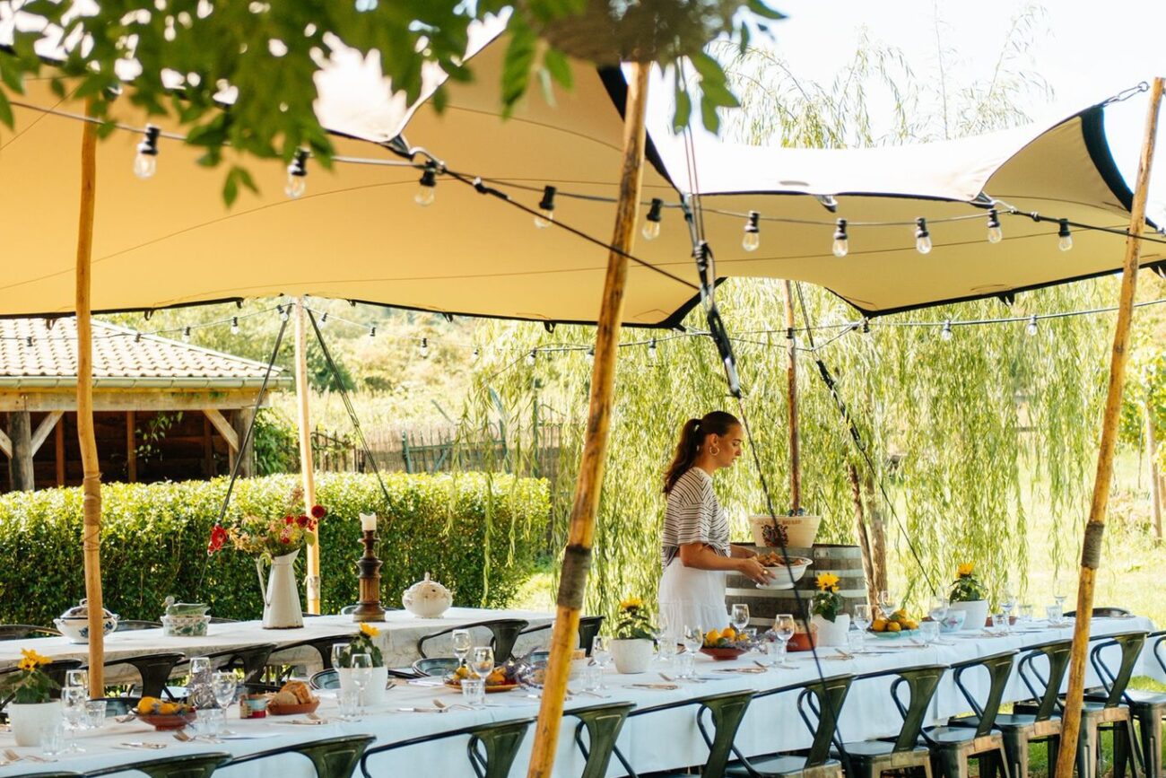 ’s Morgens wordt de ontbijttafel gedekt met vers gebakken brood, croissants en pistolets, roomboter, lokale kazen, hespen, zelfgemaakte confituren en een heerlijk gebakken of gekookt eitje van onze buurkippetjes.